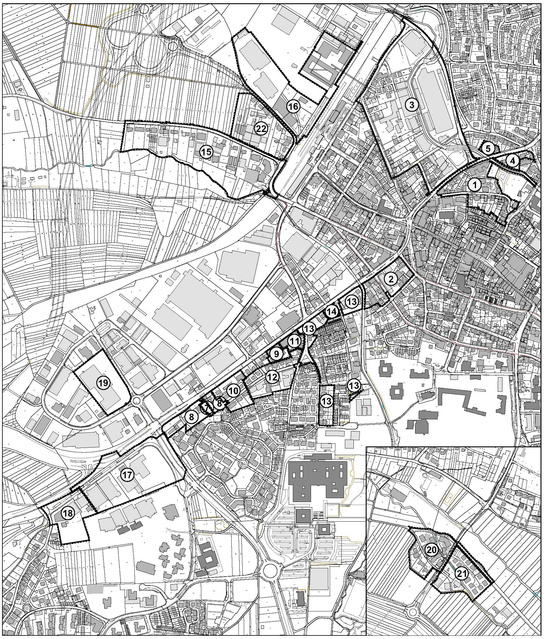 Entwurfsfeststellung - Übersicht der Abgrenzungspläne zur Satzung der Bebauungspläne in Winnenden: