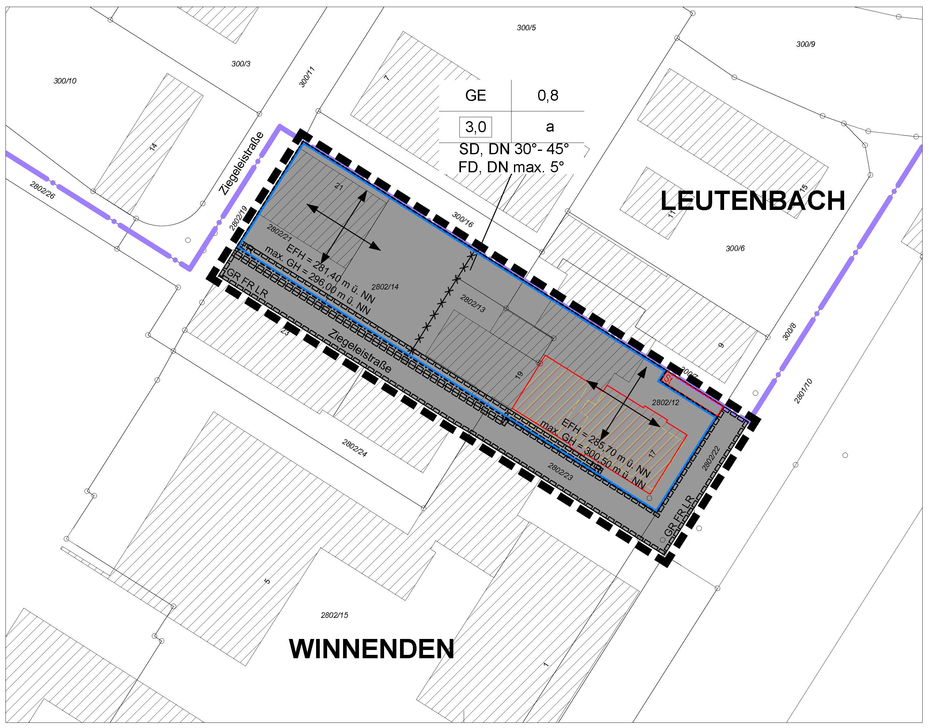 Der Gemeinderat der Stadt Winnenden hat am 20.05.2025 die Satzung zur Aufstellung des Bebauungsplans "Ziegeleistraße" in Winnenden, Planbereich 20.00, sowie über örtliche Bauvorschriften zu diesem Bebauungsplan beschlossen. Der Satzungsbeschluss wird gem. § 10 Abs. 3 des Baugesetzbuches (BauGB) öffentlich bekannt gemacht. Der Bebauungsplan bedarf keiner Genehmigung nach § 10 Abs. 2 BauGB durch das Regierungspräsidium Stuttgart, da er aus dem Flächennutzungsplan entwickelt worden ist. Das Plangebiet liegt auf Gemarkung Winnenden. Maßgebend sind der zeichnerische Teil des Bebauungsplans (Lageplan) im Maßstab 1 : 500 des Stadtentwicklungsamts Winnenden vom 26.02.2025 und der Textteil mit den planungsrechtlichen Festsetzungen vom 26.02.2025, gefertigt vom Stadtentwicklungsamt der Stadt Winnenden. Der Bebauungsplan und die Begründung können beim Stadtentwicklungsamt der Stadt Winnenden, 71364 Winnenden, Rathaus, Torstraße 10, Zimmer 324 während den regelmäßigen Dienststunden eingesehen werden. Jede Person kann den Bebauungsplan und die Begründung einsehen und über den Inhalt Auskunft verlangen. Der Bebauungsplan und die Satzung über örtliche Bauvorschriften treten mit dieser Bekanntmachung in Kraft.