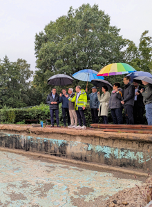 In großer Runde erinnerte Hartmut Holzwarth an die Anfänge des Mineralfreibads 1934 und das Hochwasser-Geschehen am 2./3. sowie am 26. Juni 2024, bevor Fördervereinsvorsitzender Björn Riker die Zukunftspläne für den Wiederaufbau beschrieb. In der Planung  sind verschiedene Sicherungsmaßnahmen und zusätzliche Retentionsflächen enthalten, um im Falle eines sich wiederholenden Hochwassers künftig besser gewappnet zu sein.
