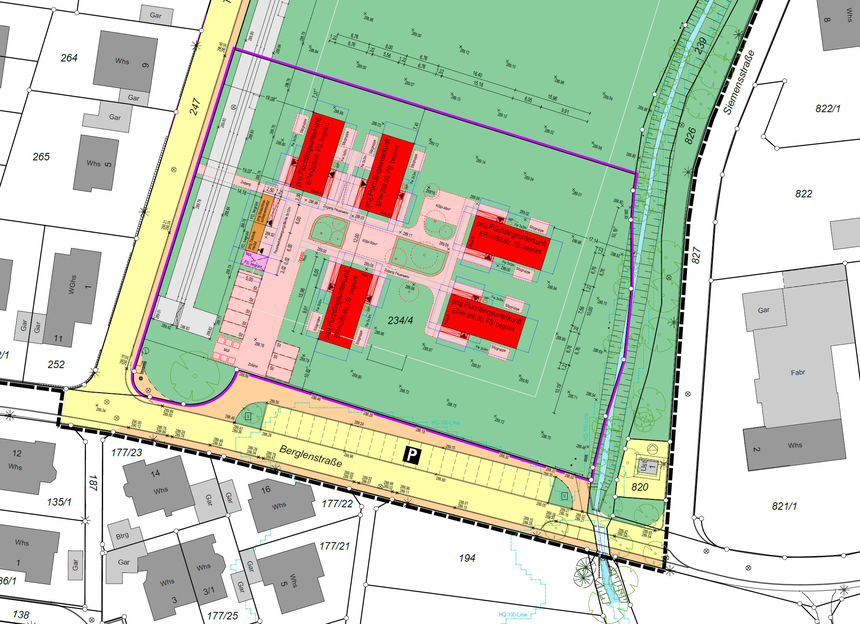 Mitte April wird auf der südlichen Hälfte des Sportplatzes mit den Erschließungs- und den Fundamentarbeiten begonnen. Die ersten Wohnmodule werden derzeit bereits inklusive Innenausbau vormontiert und anschließend zwischengelagert. Mit der Anpassung der Modullagerung konnte die Stadt dem SF Höfen-Baach die Durchführung seines Turniers im April ohne Einschränkungen durch lagernde Module ermöglichen.