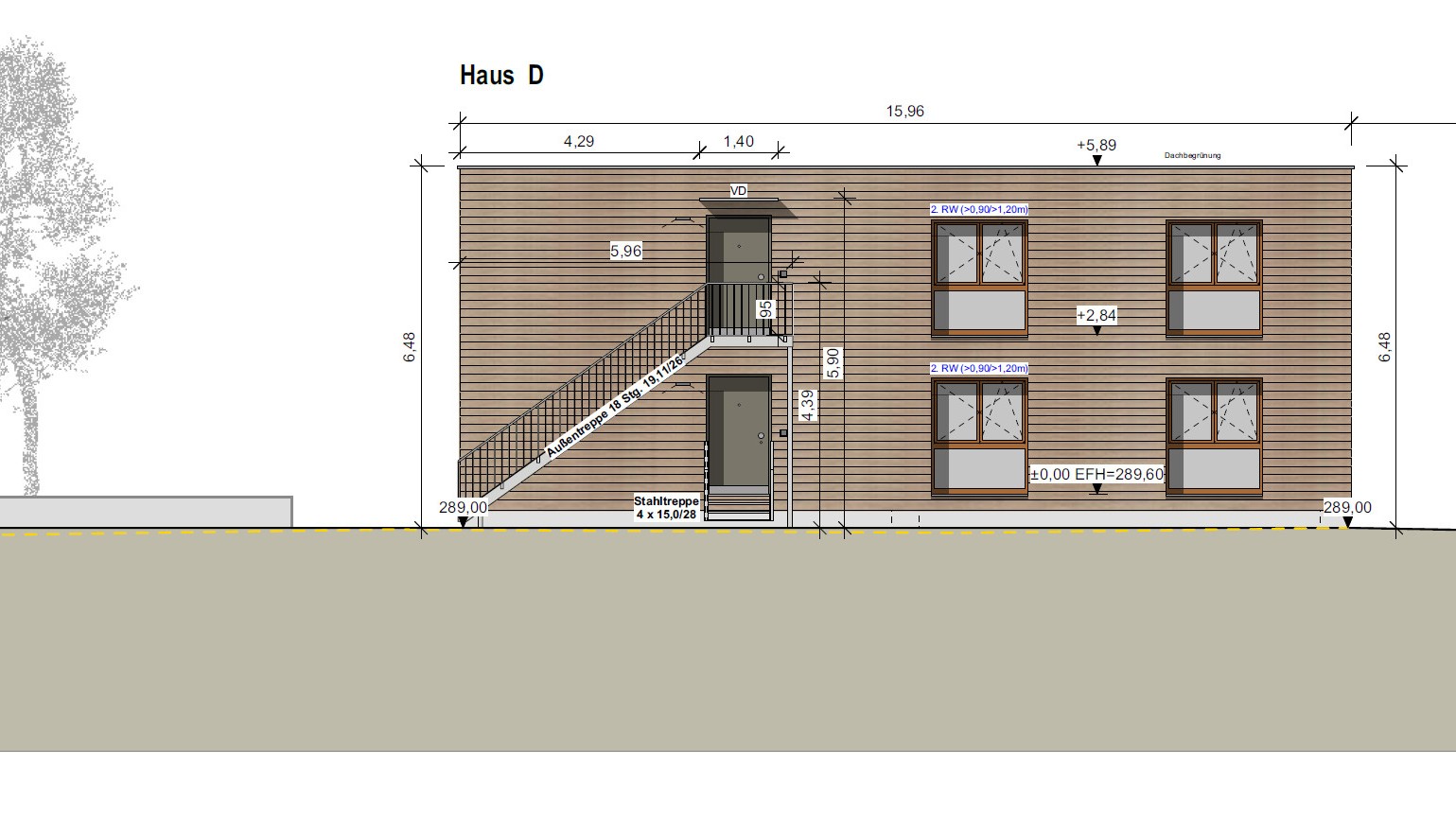 Auf der südlichen Hälfte des Sportplatzes in Höfen werden fünf Wohnhäuser zur Unterbringung von Geflüchteten aufgestellt. Diese bestehen aus jeweils vier Holzbau-Modulen, die zu einem 2-geschossigen Baukörper zusammengefügt werden. Zusätzlich wird ein Modul mit Waschraum und Technik aufgestellt.